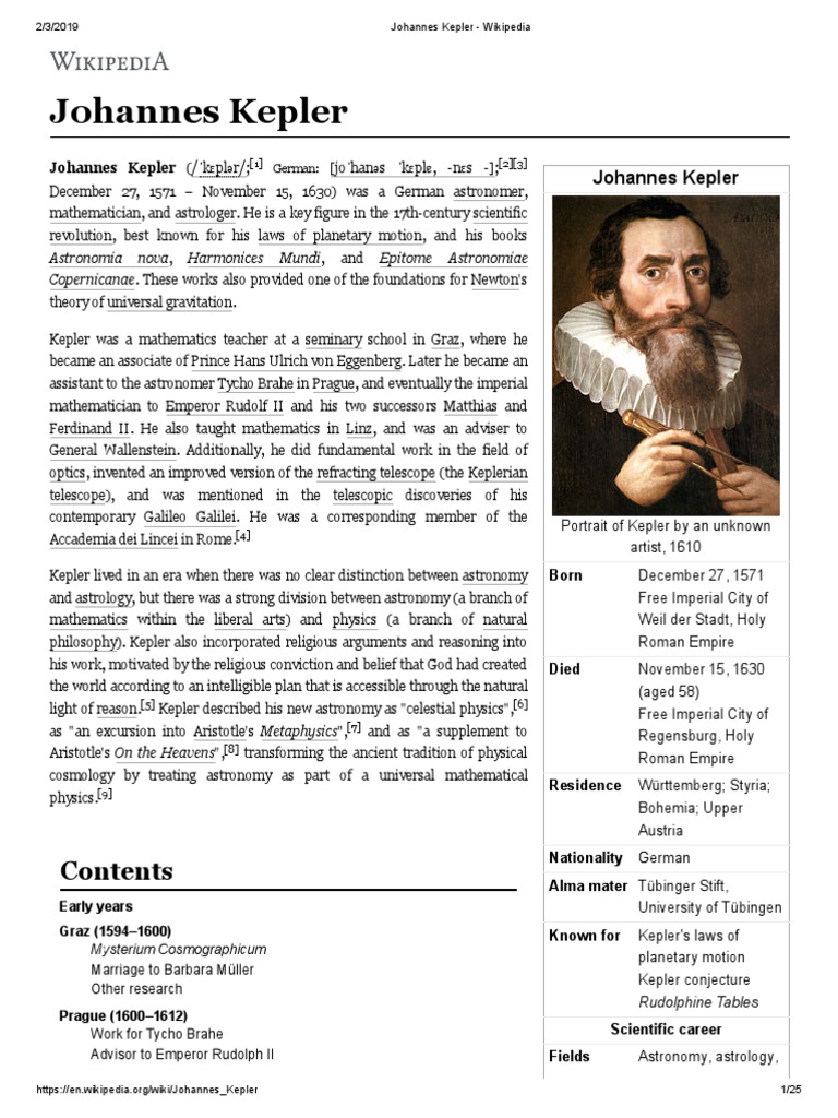 Johannes Kepler - Astrodienst Astrowiki Johannes Kepler (born on 27.12.1571 according to the Julian calendar at 14.37 [2] in Weil der Stadt, Germany; died on 15.11.1630 in Regensburg) was one of the greatest and last astronomers who was also a keen practitioner of astrology.