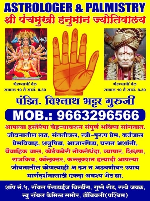 List of Astrologers in Dombivali in Mumbai - Az-India.com Astrologers, Nadi Astrologers, Computer Horoscope Services, Palmistry Experts, Horoscope Services. No. 1 Pandit Dindayal Cross Road , Dombivali West 421201 ... Who is the best astrologer in Dombivili, Mumbai? - Quora In terms of mathematical calculation, both Western Tropical and Vedic Sidereal are accurate if the astrologer or computer program have applied the correct ... Shri Agasthiya Maha Shiva Astrologer - Dombivali West - Weddingplz Shri Agasthiya Maha Shiva Astrologer, Dombivali West, Mumbai, India. Specialized in Horoscope And Match Making, Hawan And Pooja.