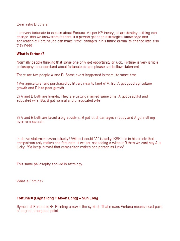 Fortuna Point in KP Astrology - YouTube Fortuna Point in KP Astrology, How to calculate Fortuna Lord and it's results in the various houses. How Fortuna Lord Gives Fortune and it's Significance The part of Fortuna is an...